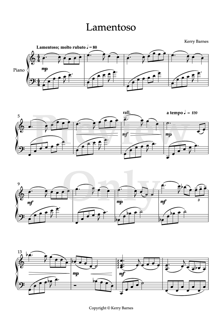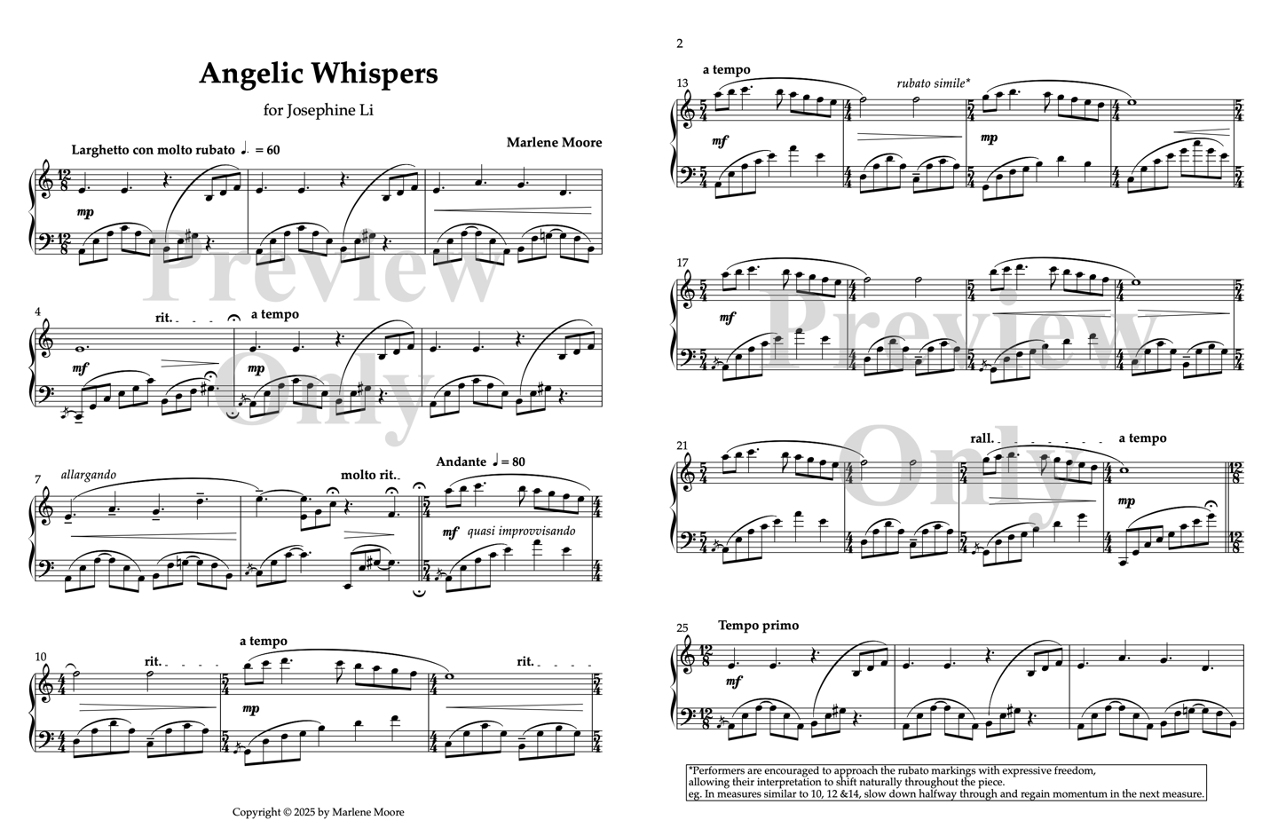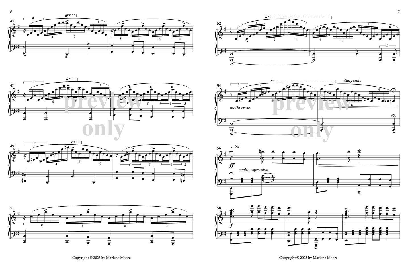 Dance in D Major is a lively, energetic piano solo filled with crisp articulation, playful syncopations, and dazzling runs. Its dance-like character shines through dynamic shifts and rhythmic drive, while subtle tempo changes keep it engaging. Bright and exhilarating, it’s a joy for both performer and audience.