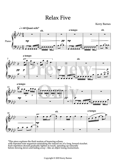Children’s piano music remains close to Kerry’s heart, and she has composed a collection of 24 miniatures for mid-beginner to mid-intermediate levels. Additionally, Kerry has assigned me to engrave her upcoming 6 track EP of relaxing piano music, soon to be in all stores!