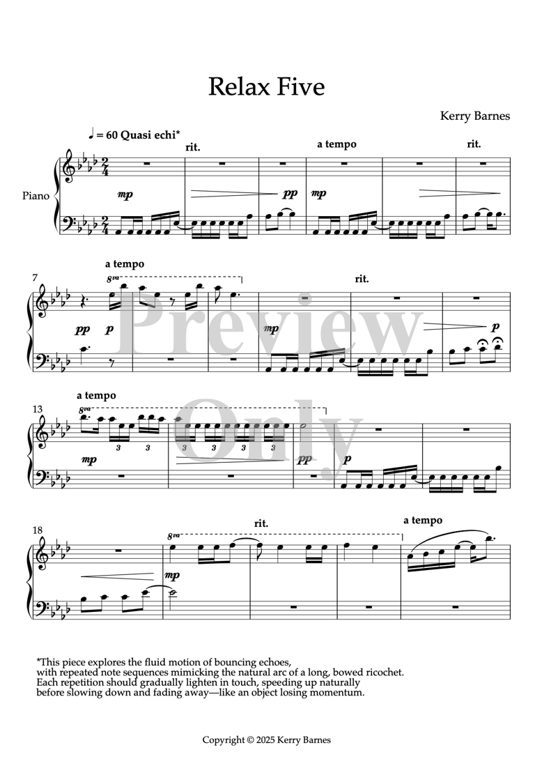 Children’s piano music remains close to Kerry’s heart, and she has composed a collection of 24 miniatures for mid-beginner to mid-intermediate levels.